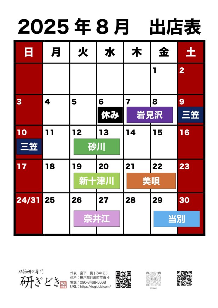 【2025年8月 出店表】